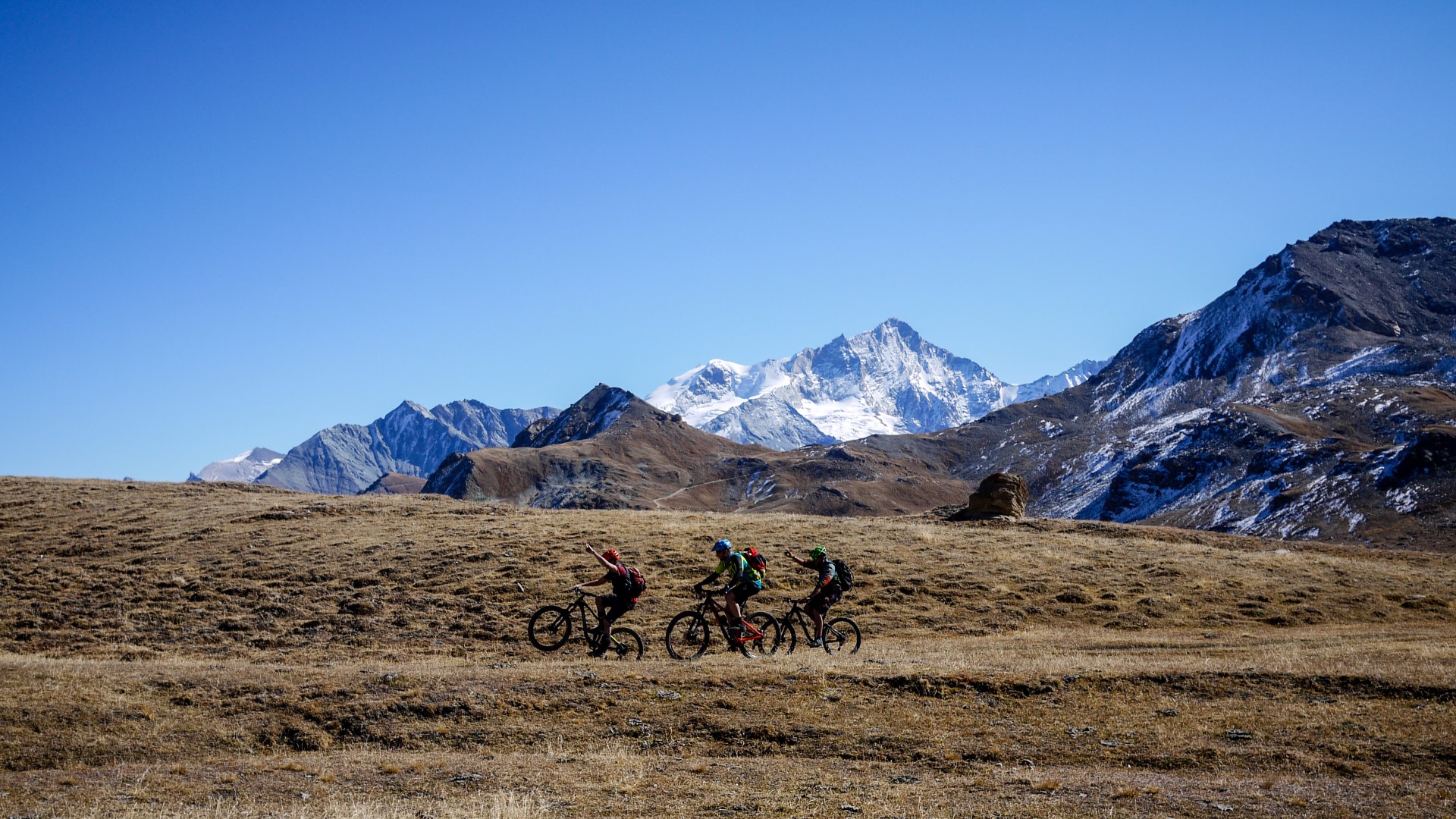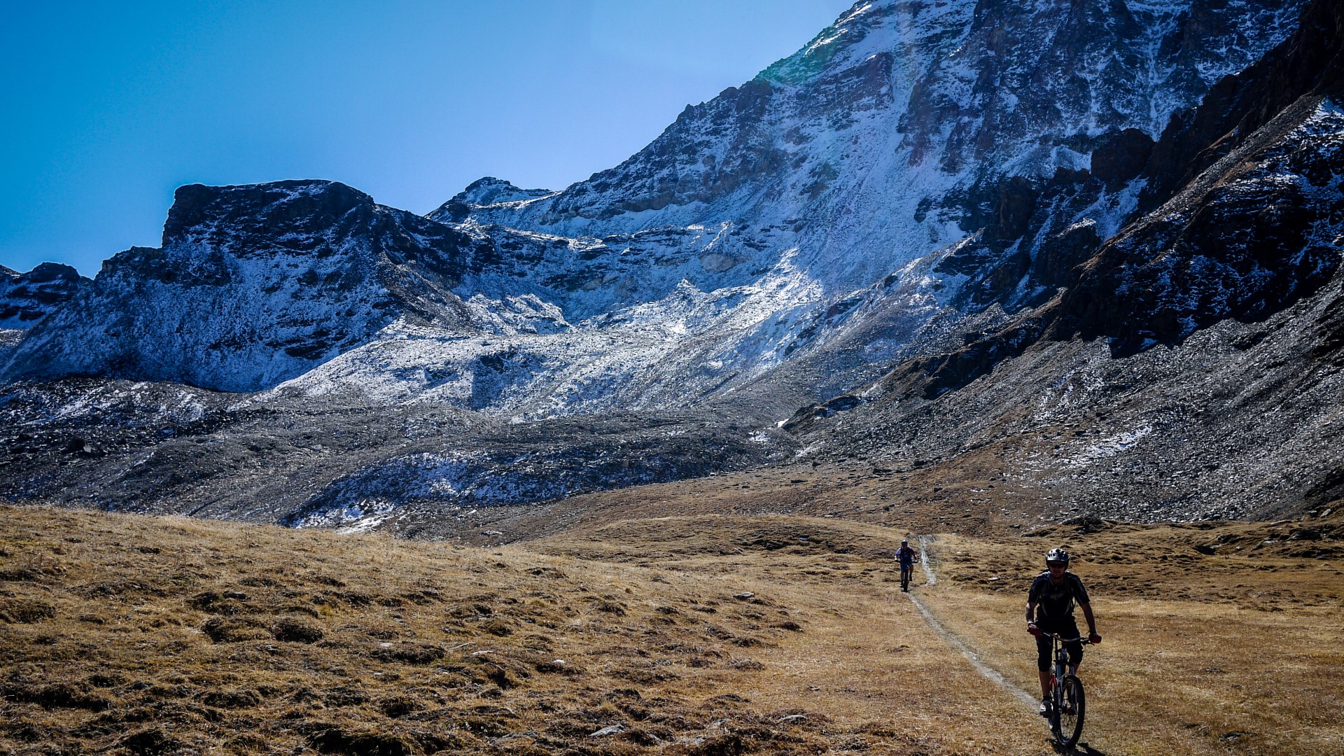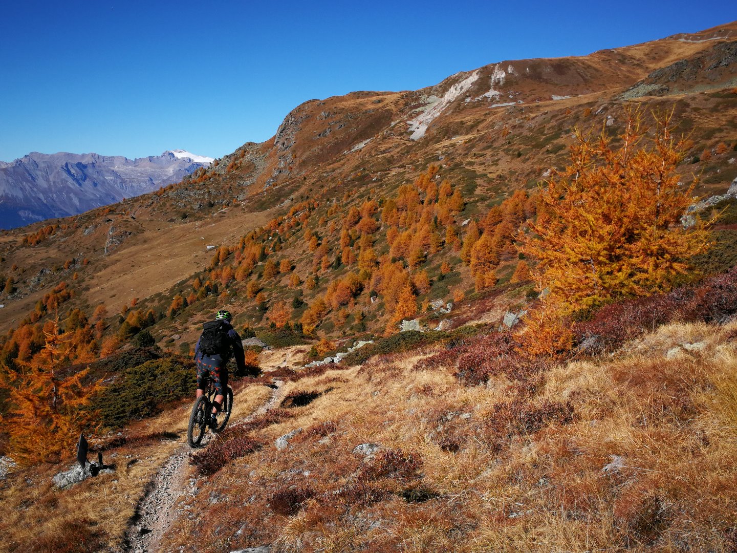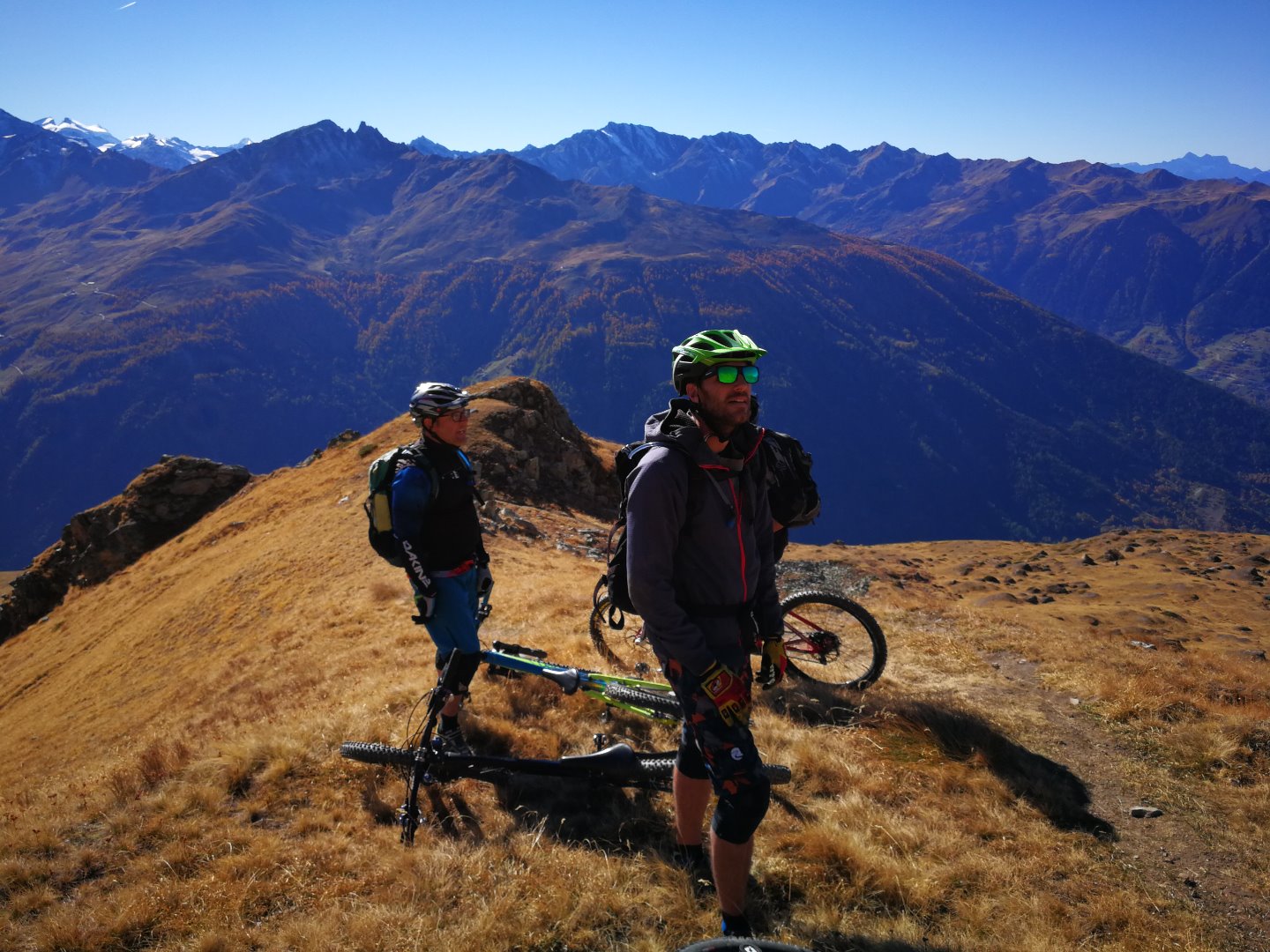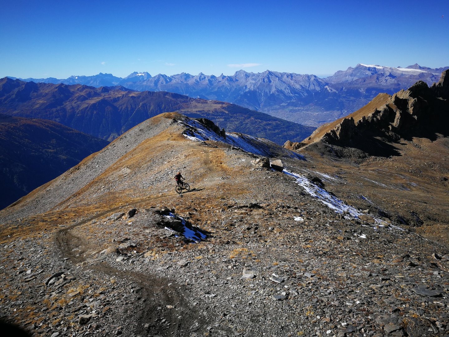• Une superbe journée de bike ! Pas un nuage dans le ciel et en t-shirt à 3000m à mi-Octobre, pfffiouuu... Et ces paysages...à couper le souffle, vraiment une toute belle journée en montagne !