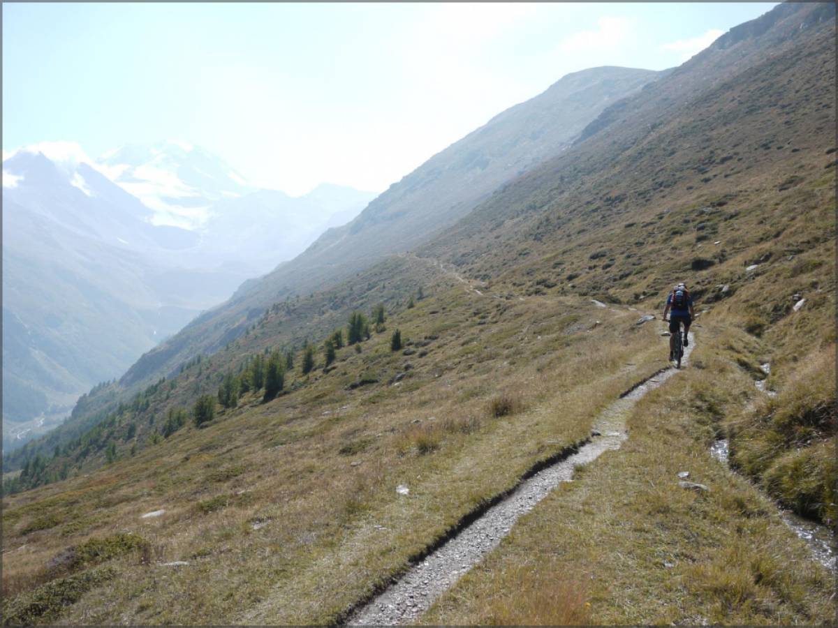 Avec le Saflischpass, col situé à 2600m que l'on peut franchir en roulant comme point culminant et la splendide descente sur Ze Binne, cette seconde étape fait la part belle aux single de rêve. La remontée sur Abnimatt emprunte la piste régulière qui part de Binn.