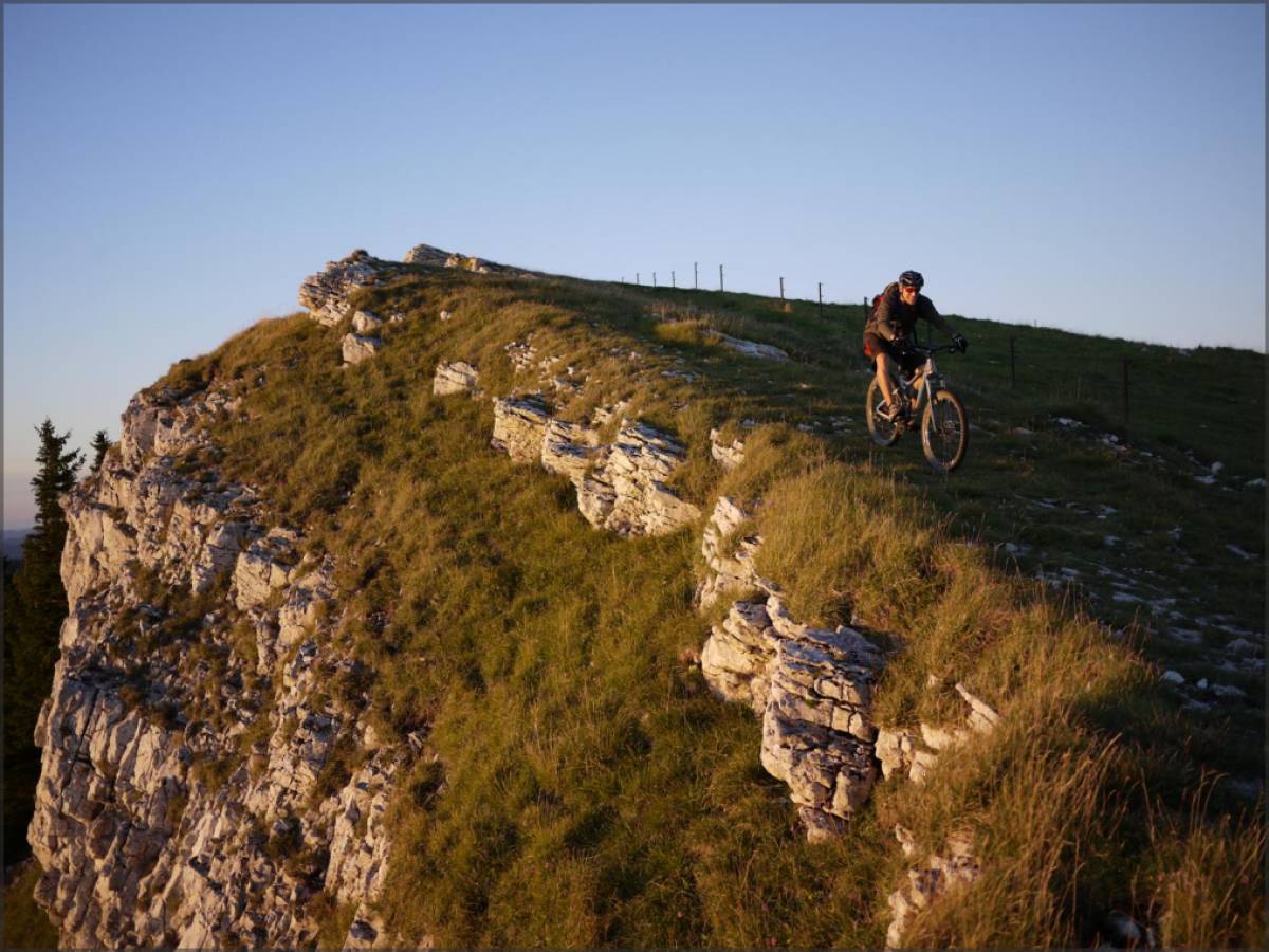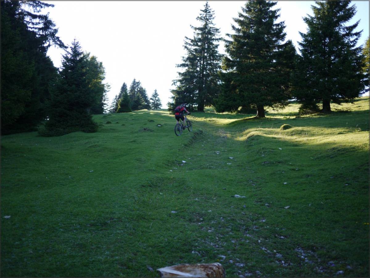 Le départ se fait sur un terrain herbeux parsemé de cailloux, qui pourrait être sacrément traître par temps humide, prudence! Dès les Avattes on se retrouve petit-à-petit sur du single de forêt, sans difficulté technique, mais super sympa à rouler.
