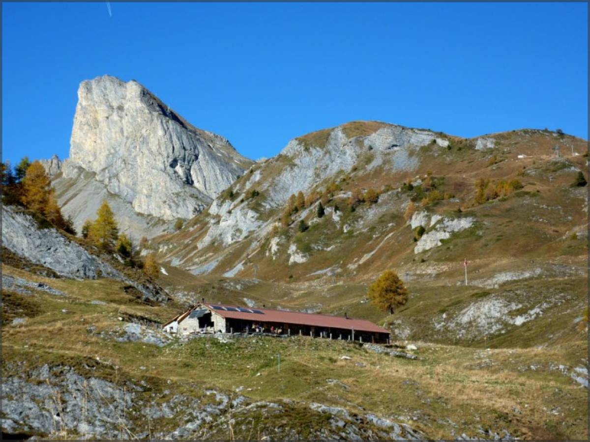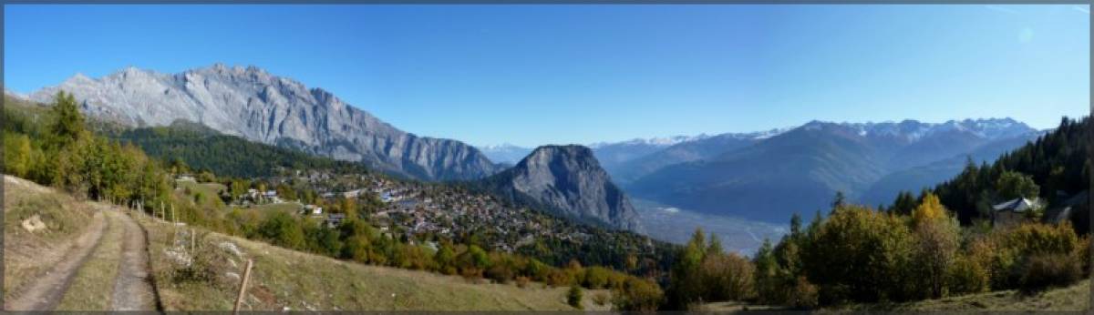 Suspendu à flanc de paroi, le chemin bien carrossable laisse tous loisirs de contempler la plaine et les versants opposés. Après l'alpage de Sinlio, la pente s'accentue en direction de Randonne et ne diminuera plus jusqu'à l'Erié 500m plus haut.