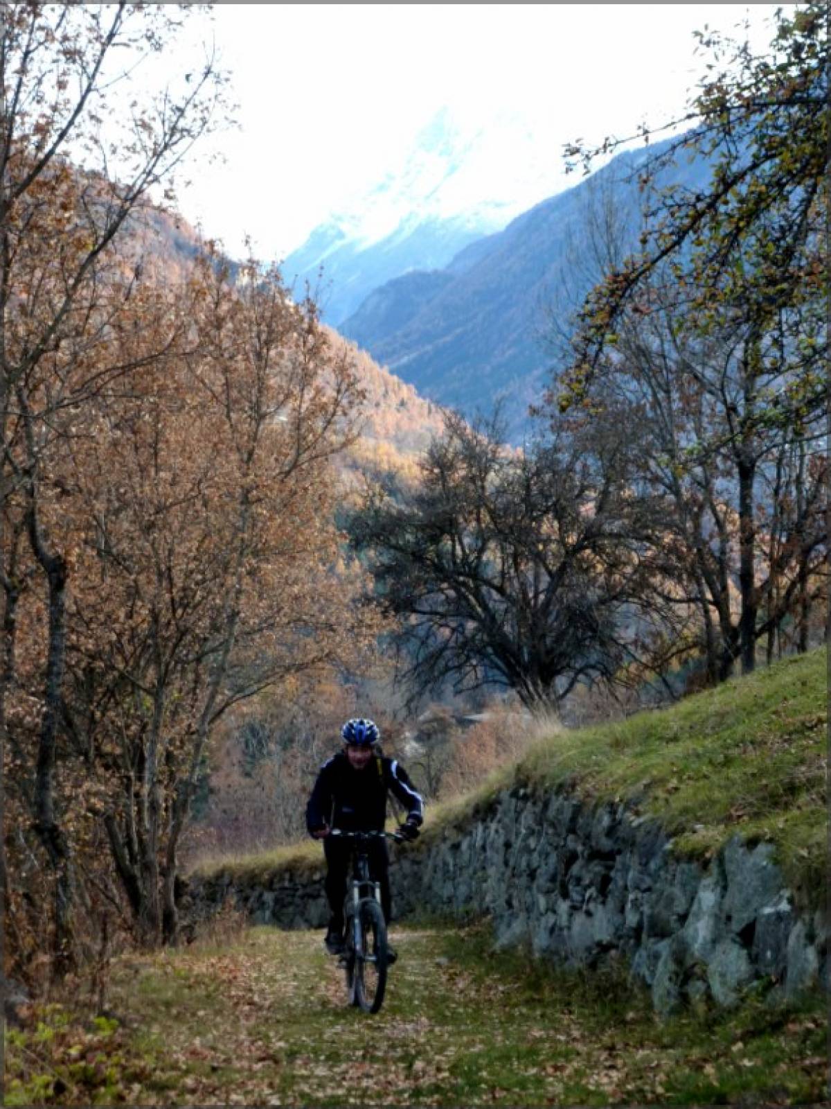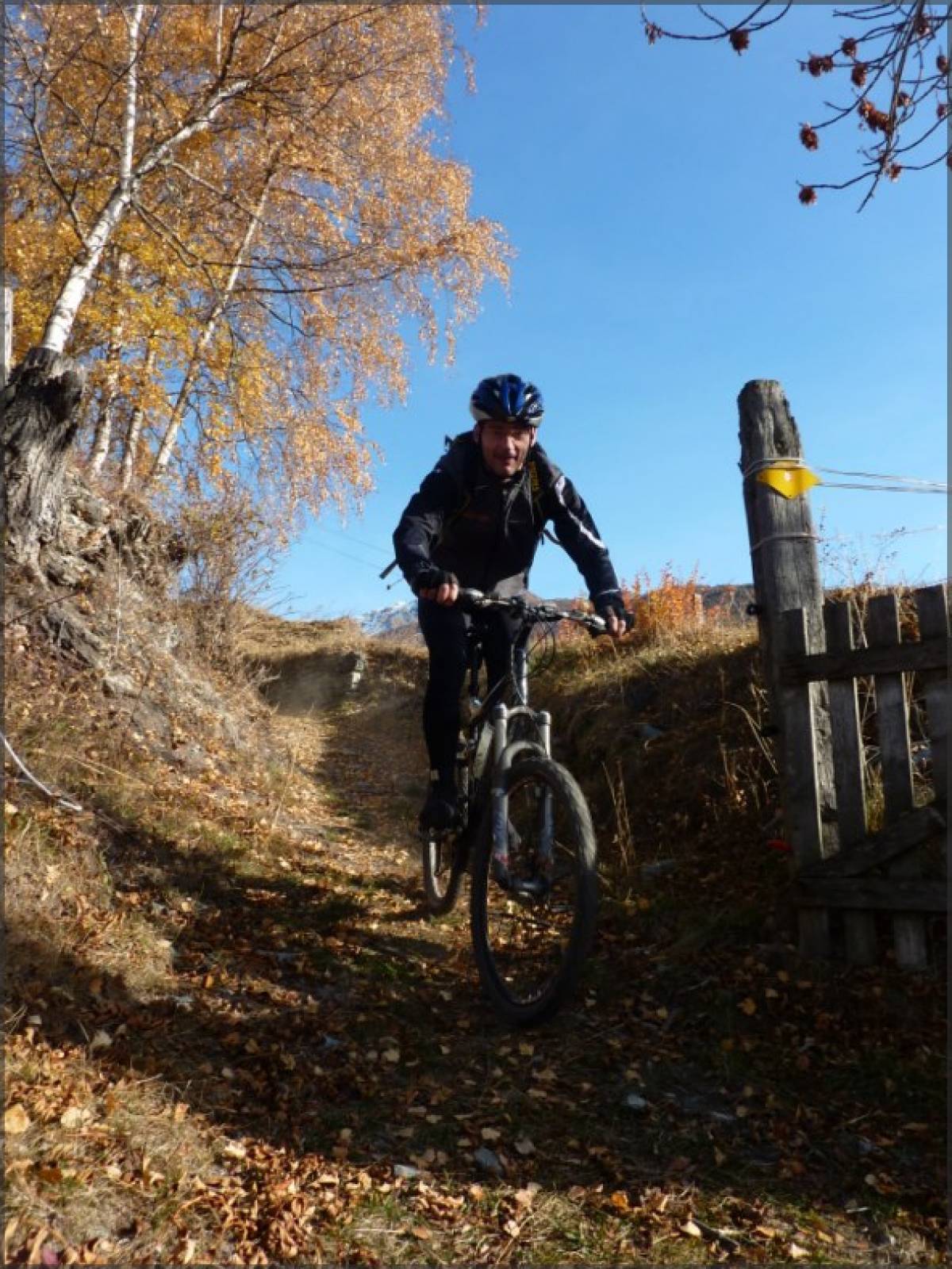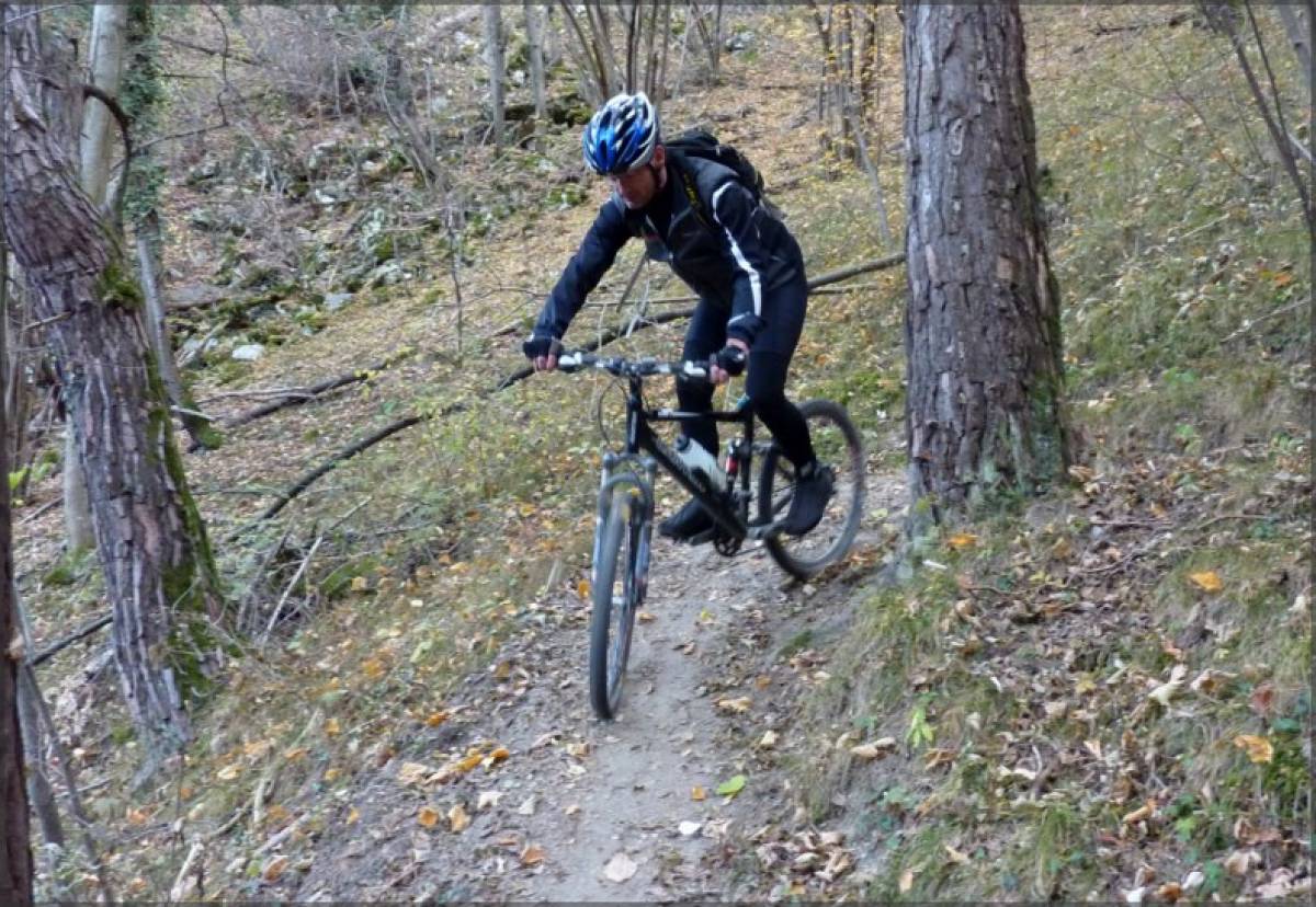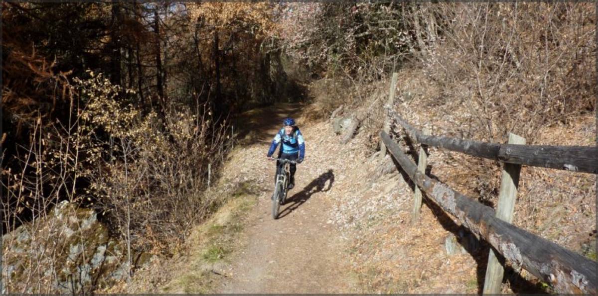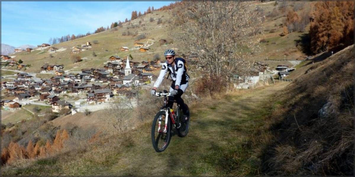 Xème week-end de grand beau en Valais, pendant que les autres cantons se morfondent sous le stratus. C'est en pensant à tous ces malheureux que nous montons la route de Nax bien ensoleillée.Une fois la partie la moins gratifiante avalée, nous transitons entre Nax et Vernamiège, puis Mase par le premier sentier de la journée. Tracé à flanc de coteau ce chemin tranquille nous amène jusqu'à Mase ou nous attend notre première grosse descente de la journée. La descente sur Sevanne est terriblement sèche et poussiéreuse, ce qui rend l'adhérence très précaire. Quelques virages bien techniques agrémentés de slalom entre les moutons et nous nous retrouvons avec Jacques sur le plateau de Sevanne pelé et usé par les ovidés qui profitent de l'absence de la neige pour prolonger leur séjour sur les alpages. Court répit sur le terrain horizontal avant de se retrouver sur les devers qui nous plongent sur Combioula. Du vrai VTT parsemé de difficultés qui se termine par une succession joueuse de virolets serrés qui finissent au bord de la Borgne. Pas de pause dans le fond de la gorge ombragée ou la température a bien changé. Nous poursuivons donc par la remontée sur Vex qui va rapidement nous réchauffer. Débutant par un sentier tranquille, cette montée se redresse au fur et à mesure de notre avancement. Quelques exercices d'équilibre dans l'étroit sillon creusé et raviné ou nous tentons de rester sur le vélo et nous voilà en-dessous de Vex. Quelques coups de pédales plus loin, nous pouvons nous laisser couler quelques hectomètres sur la route principale avant de bifurquer à droite pour rejoindre un sentier qui plonge en direction de l'usine électrique 350m en-dessous. Quelques passages spectaculaires nous proposent une vue directe sur le fond de la gorge bien en contrebas. Un vrai régal ou concentration et maitrise vont de pair. Pour terminer cette magnifique sortie.
