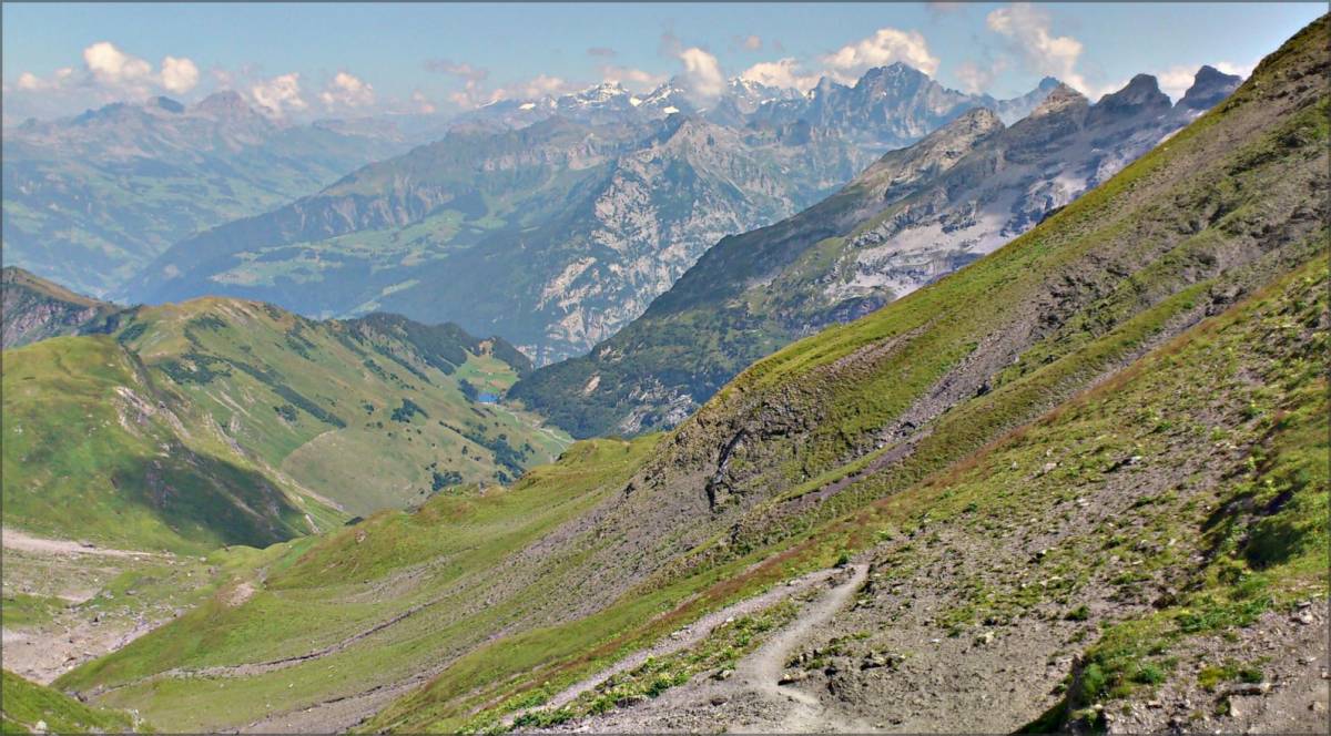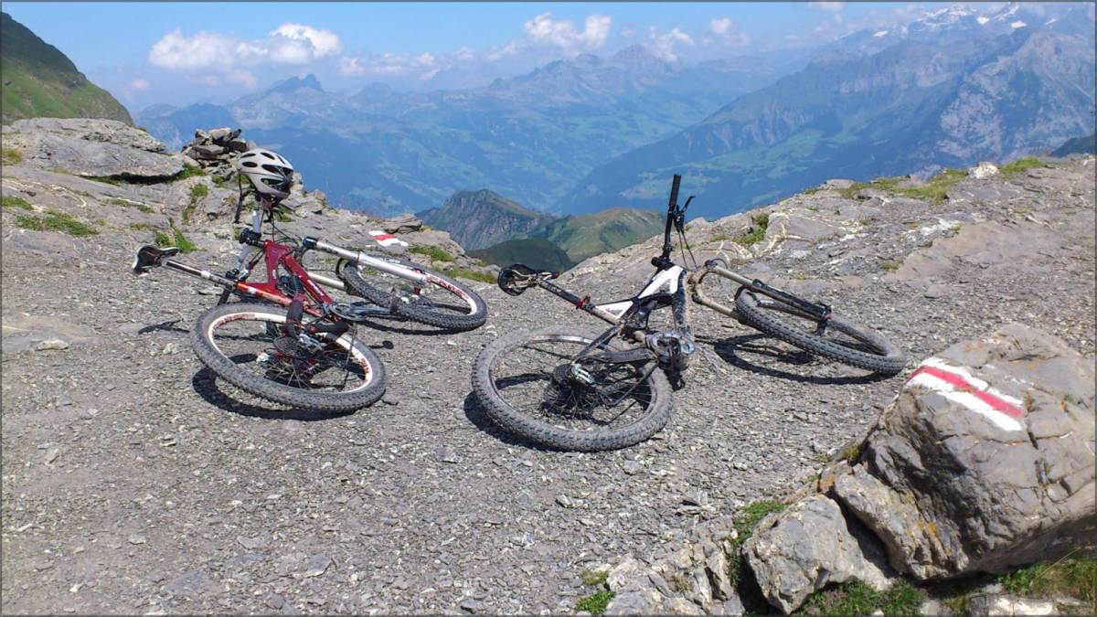 La montée au col alpin du Surenenpass depuis Engelberg est presque entièrement roulable pour les gros mollets, le bas-peuple devant certainement se contenter d'un peu de poussette sur le dernier tiers de l'ascension :-). La descente, quant à elle, peut sembler fluide vue du col, mais recèle de multiples passages techniques.