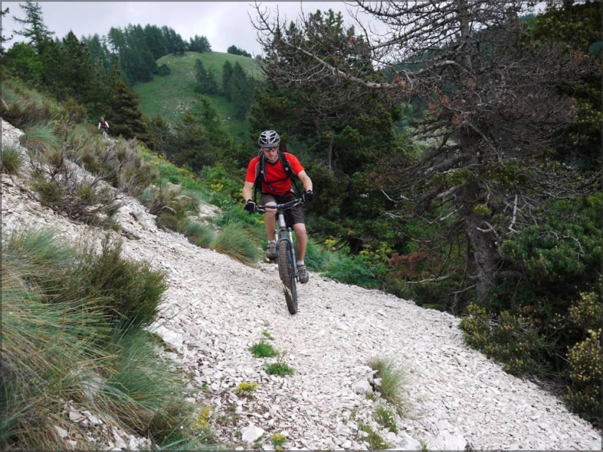 Après avoir rejoint le sentier qui vient du Puy de Rent, on attaque les épingles. Si les premières sont assez serrées, la suite devient nettement plus facile et la fin est une véritable apothéose! Le sentier, bien que très pratiqué, est une véritable invitation au tirage de bourre, un vrai régal !