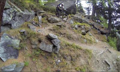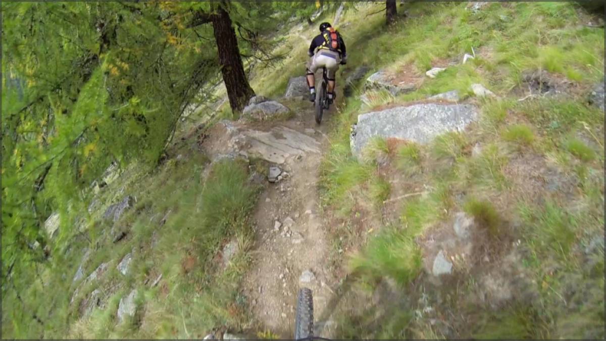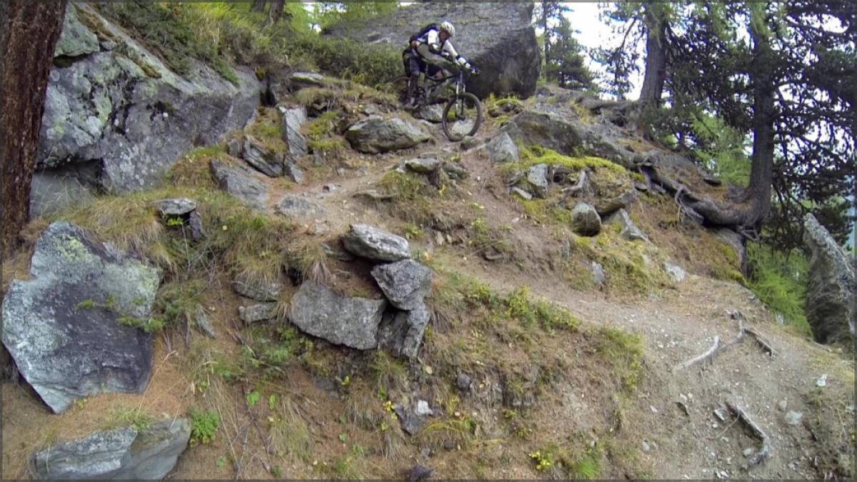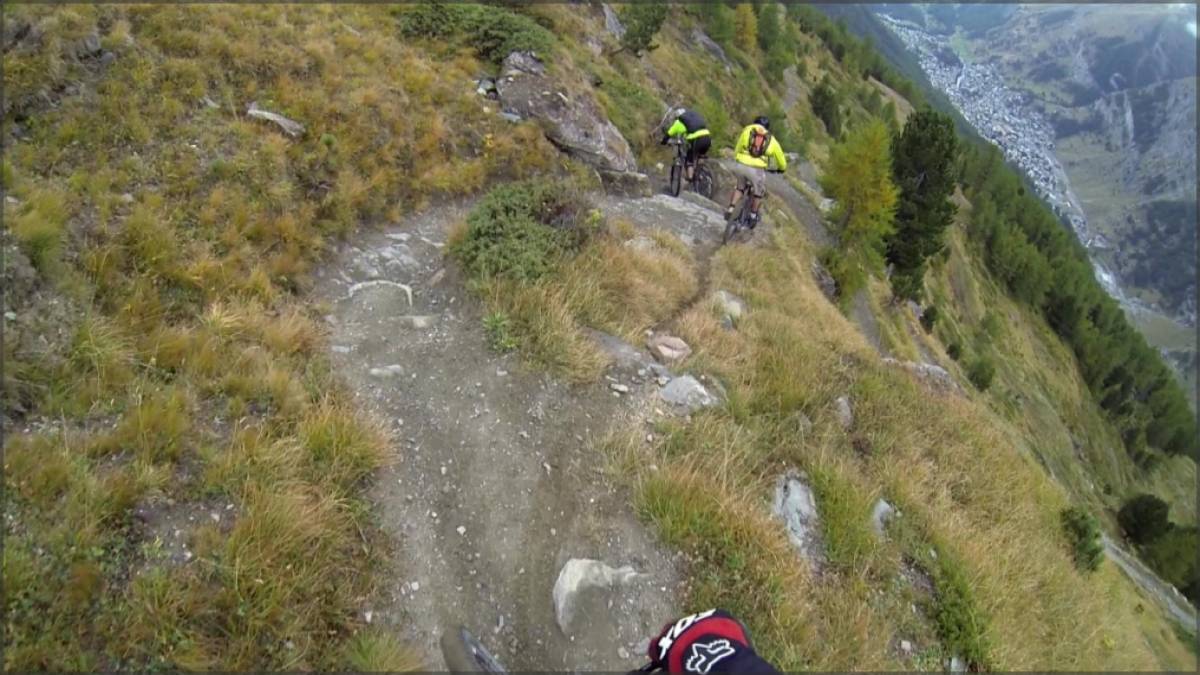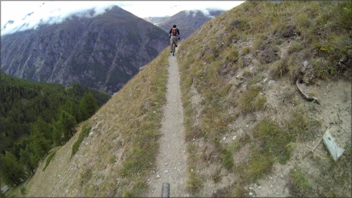 D'Ottafe, après un très court passage sur bitume, on empruntera à nouveau l'Europaweg. Valloné à cet endroit, on le suivra jusqu'au point 1980 où débutera notre descente sur Täsch. Ludique et principalement en terrain forestier, cette plongée dans la vallée mixe allègrement passages techniques et rapides, épingles et boucles serrées,...bref inutile de dire qu'arrivé à Täsch, c'est chaud bouillant que l'on aura envie de continuer...