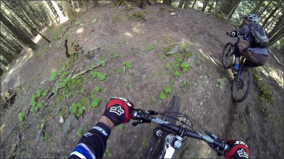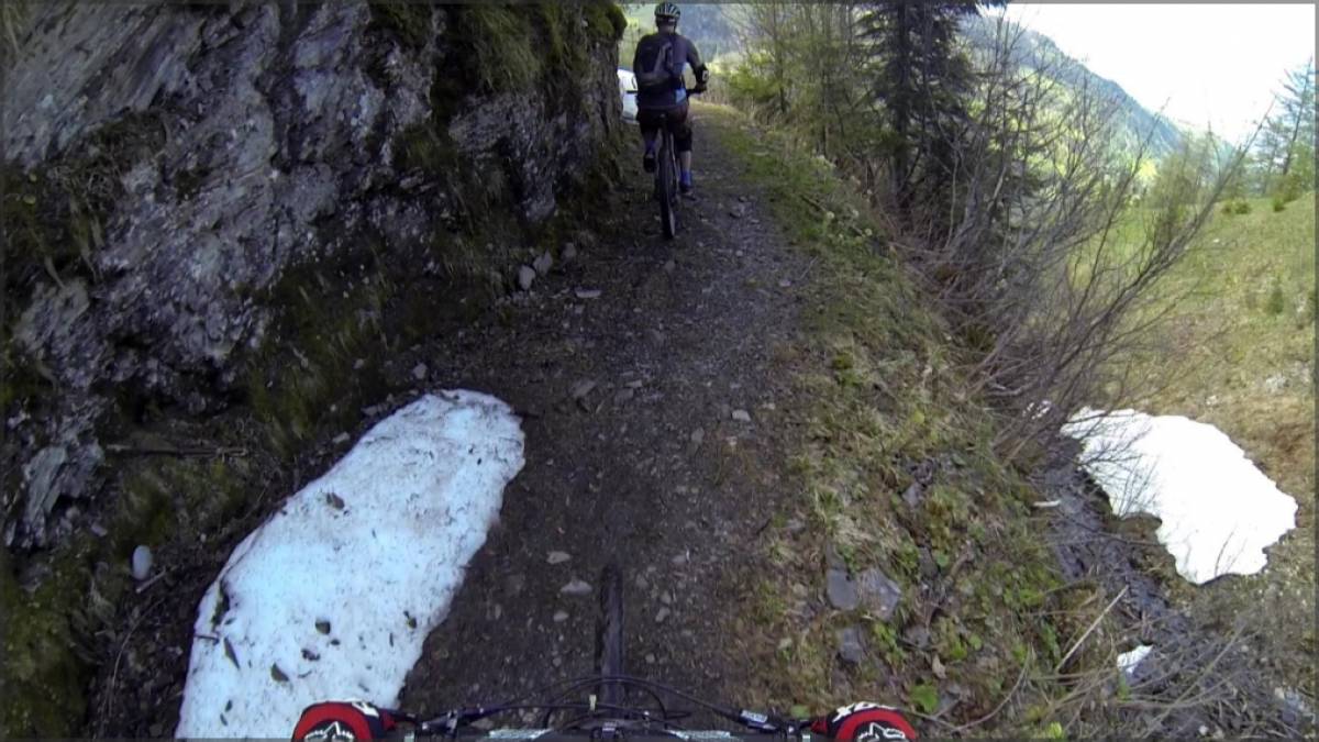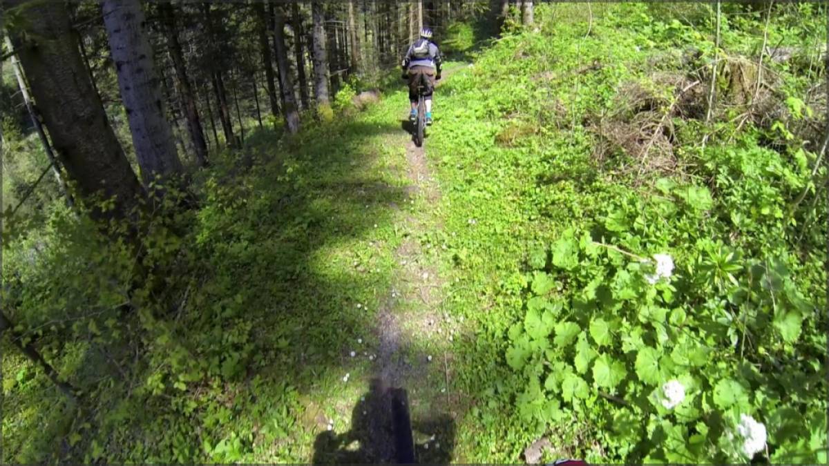 Débute alors la descente vers St-Maurice, la forêt de Seintanère déroule son superbe single, alternant traversées et épingles faciles jusqu'aux torrents du Draversa et du Cleusey que l'on traverse. On suit alors la route direction La Daille sur environ 500m avant de prendre le sentier qui plonge sur la droite. Les épingles y sont nettement plus serrées, ça sera le passage le plus ardu de cette descente.