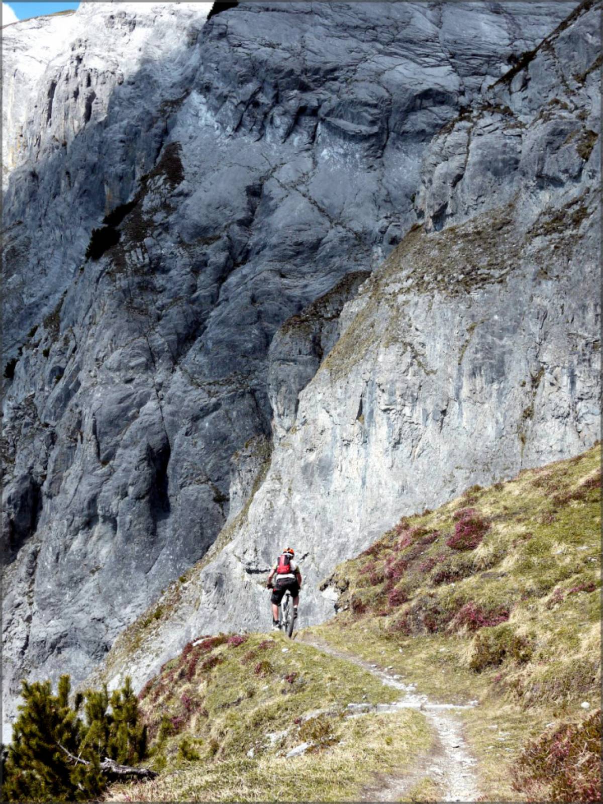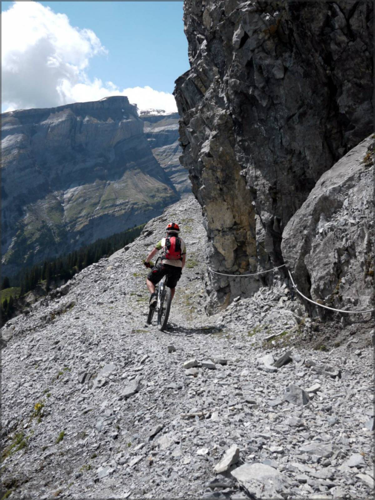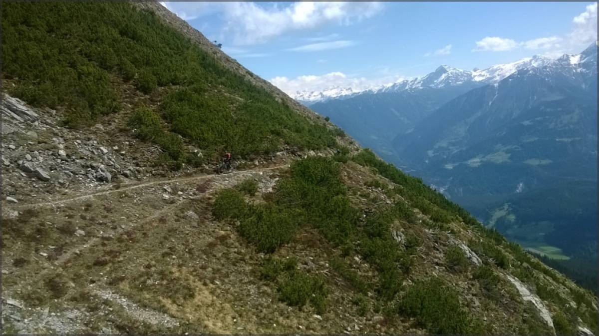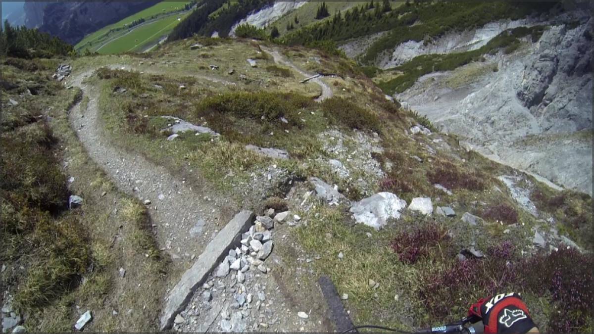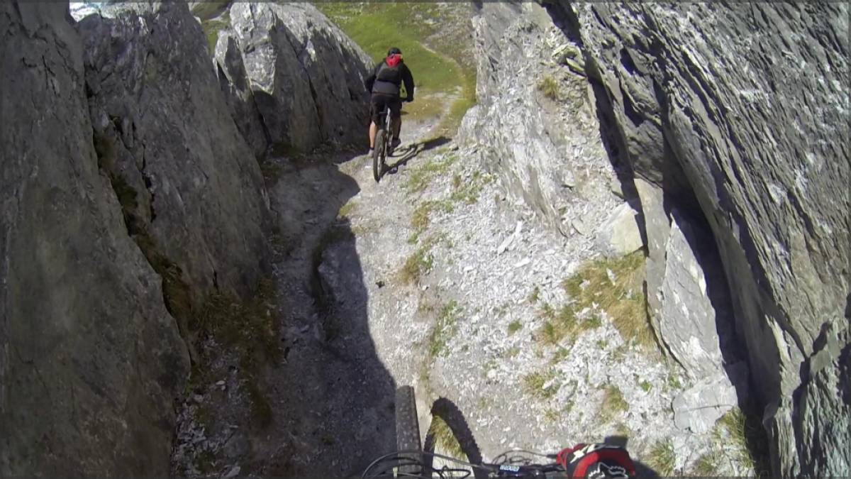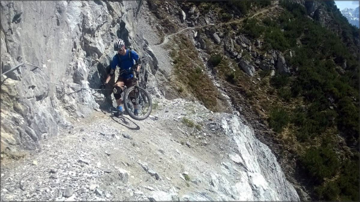 Mix de parties roulantes, de passages techniques et de poussettes, le tout dans un environnement résolument alpin et par endroits suspendu dans la falaise, le single que l'on emprunte demande une bonne dose de concentration, toute chute pouvant avoir des conséquences plutôt définitives...