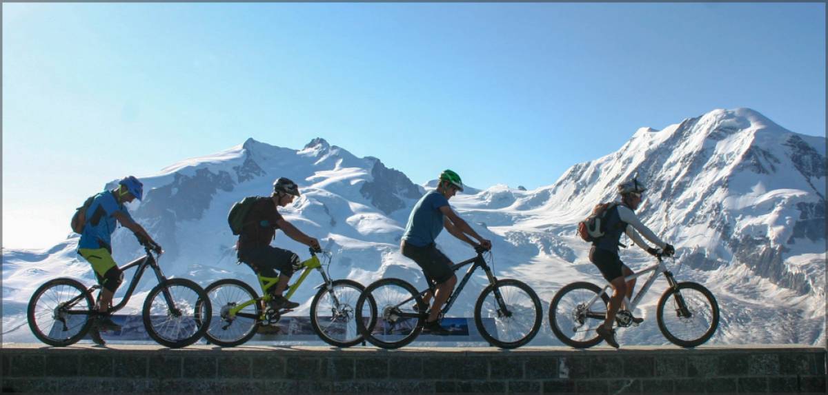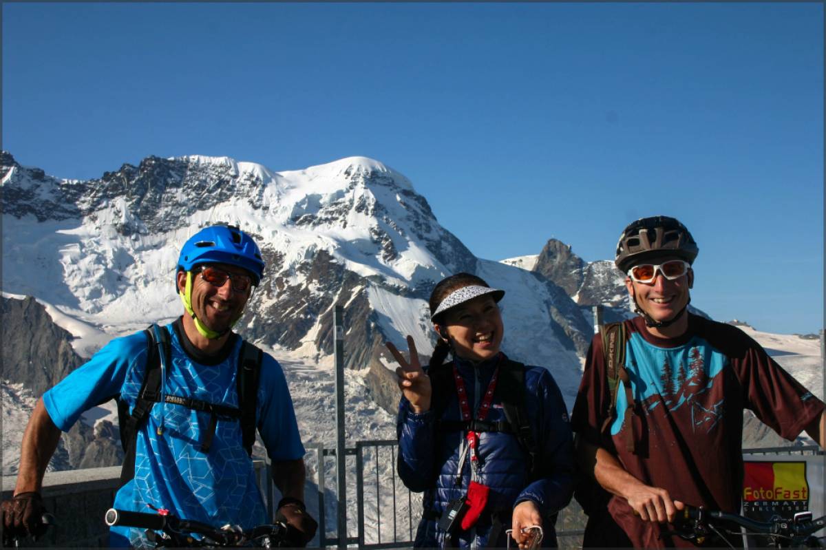 Après avoir biké environ 1/2 journée, prendre le téléphérique de St-Niklaus à Jungu (http://www.jungenbahn.ch). On y charge que 2 vélos à la fois et il faut compter 15 minutes par montée et 15 CHF par personne.