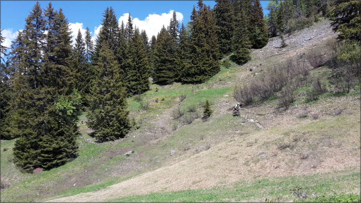 Descente sympa et variée, la plupart du temps sur des singles. Début un peu technique (très sympa, rien de méchant, pas expo), une section sur piste en terre de Blatti à Schneeweid, puis de très jolis sentiers.