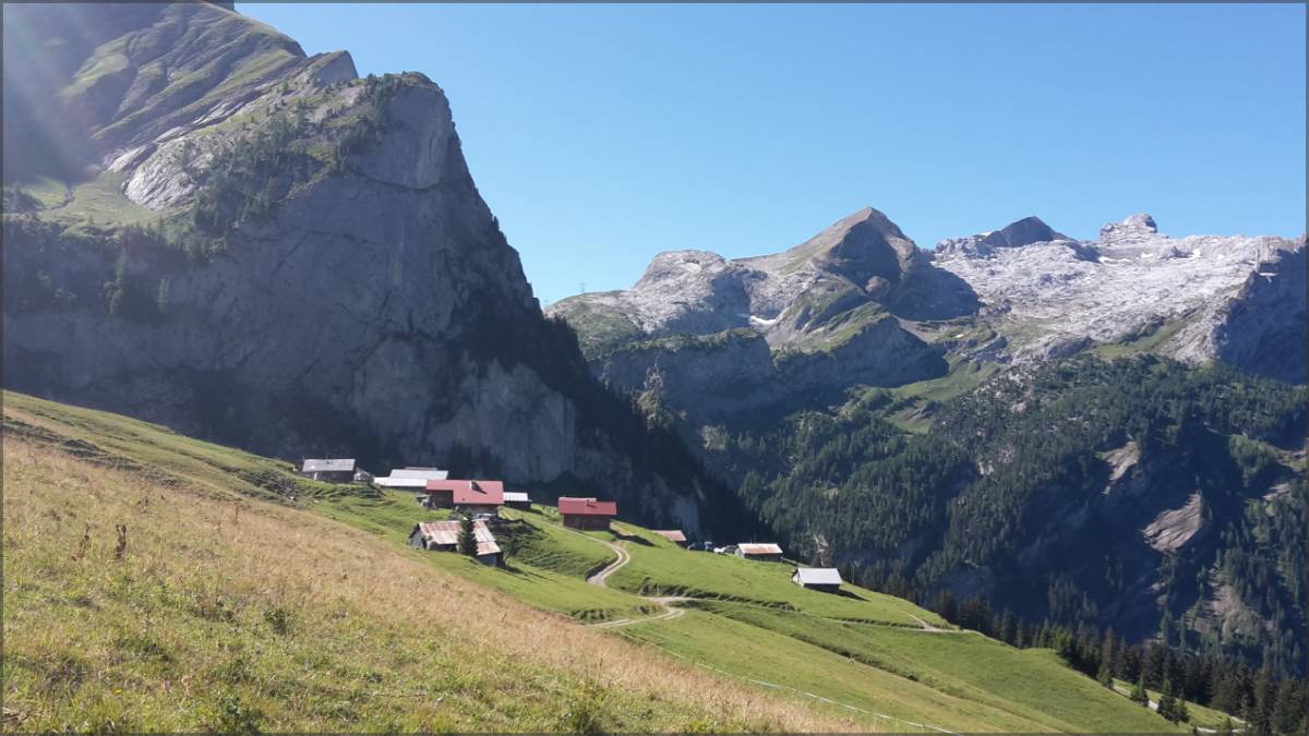 Après un petit café à Gsteig, ça monte directement sur une route d'abord goudron puis piste, bien roulant jusqu'à Vorderi Wispile. Les 200 derniers mètres de D+ sont bien raides et arrivés au sommet, la pause est obligatoire tant la vue est belle de là haut !