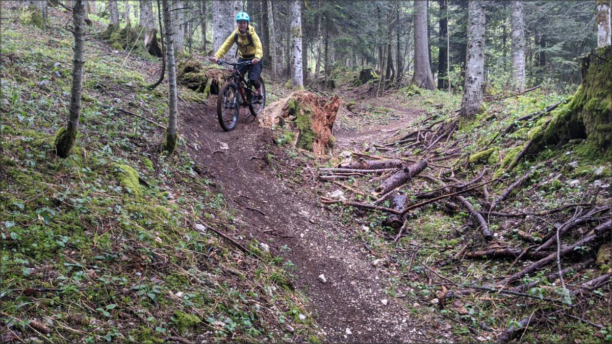 Single track typique Enduro bien aménagé avec petits gaps et sauts, pump section et slalom.