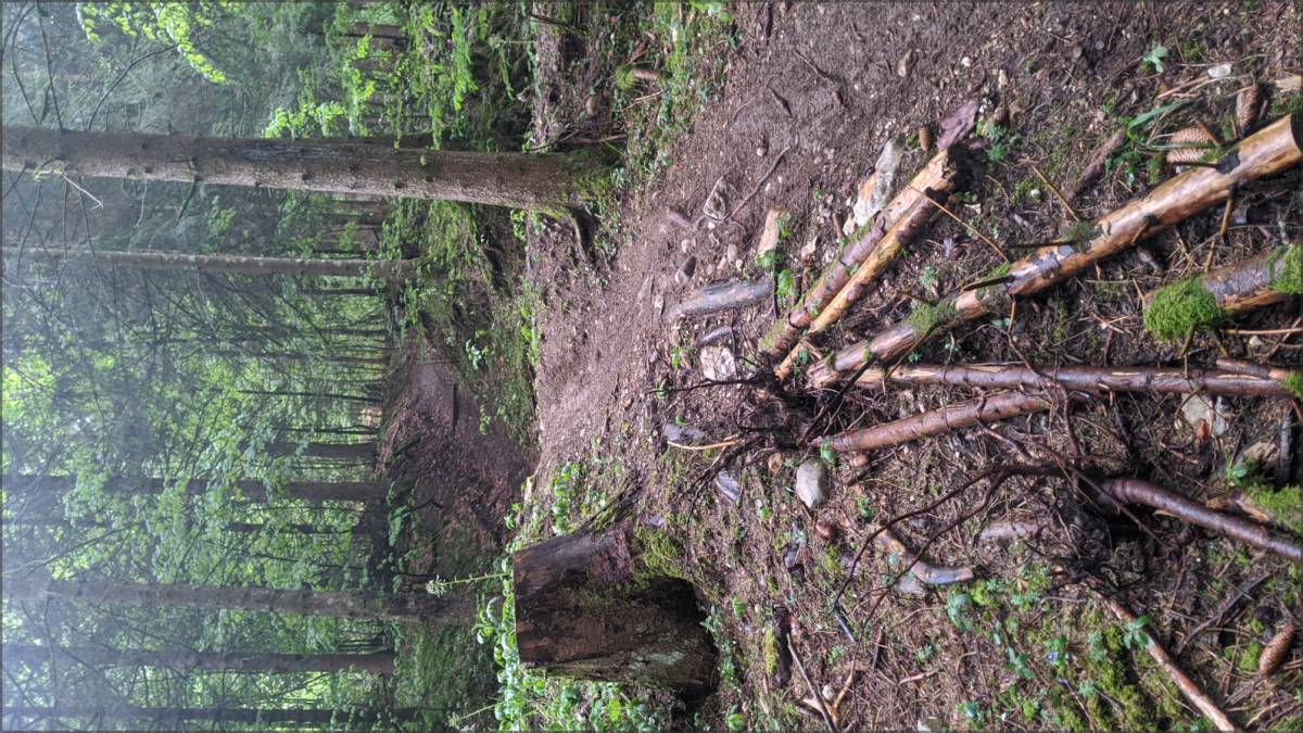 Le tracé a été aménagé dans la forêt le long de l'ancienne piste de ski, il convient de bien suivre (chercher...) le balisage orange fluo au sol ou sur les cailloux et souches d'arbres.